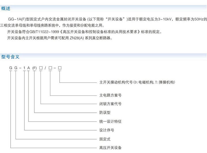 GG-1A(F)固定式户内交流金属封闭开关设备