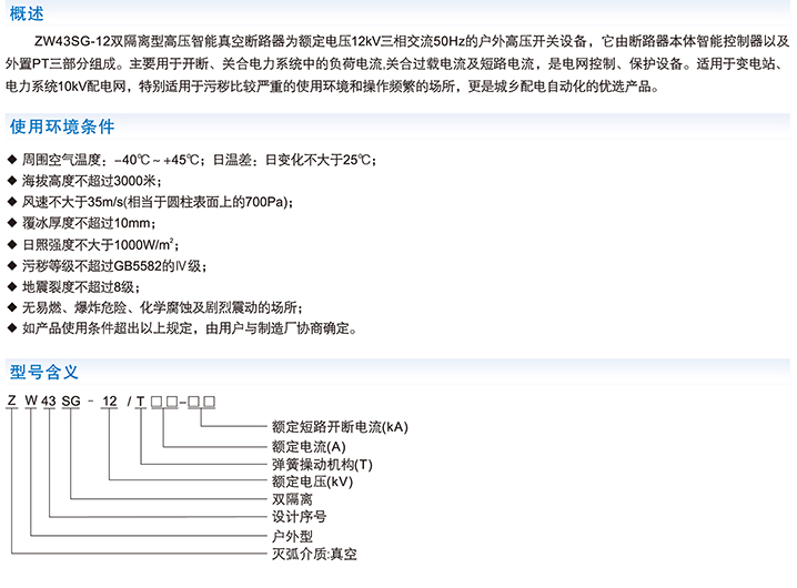 ZW43SG-12双隔离型高压智能真空断路器