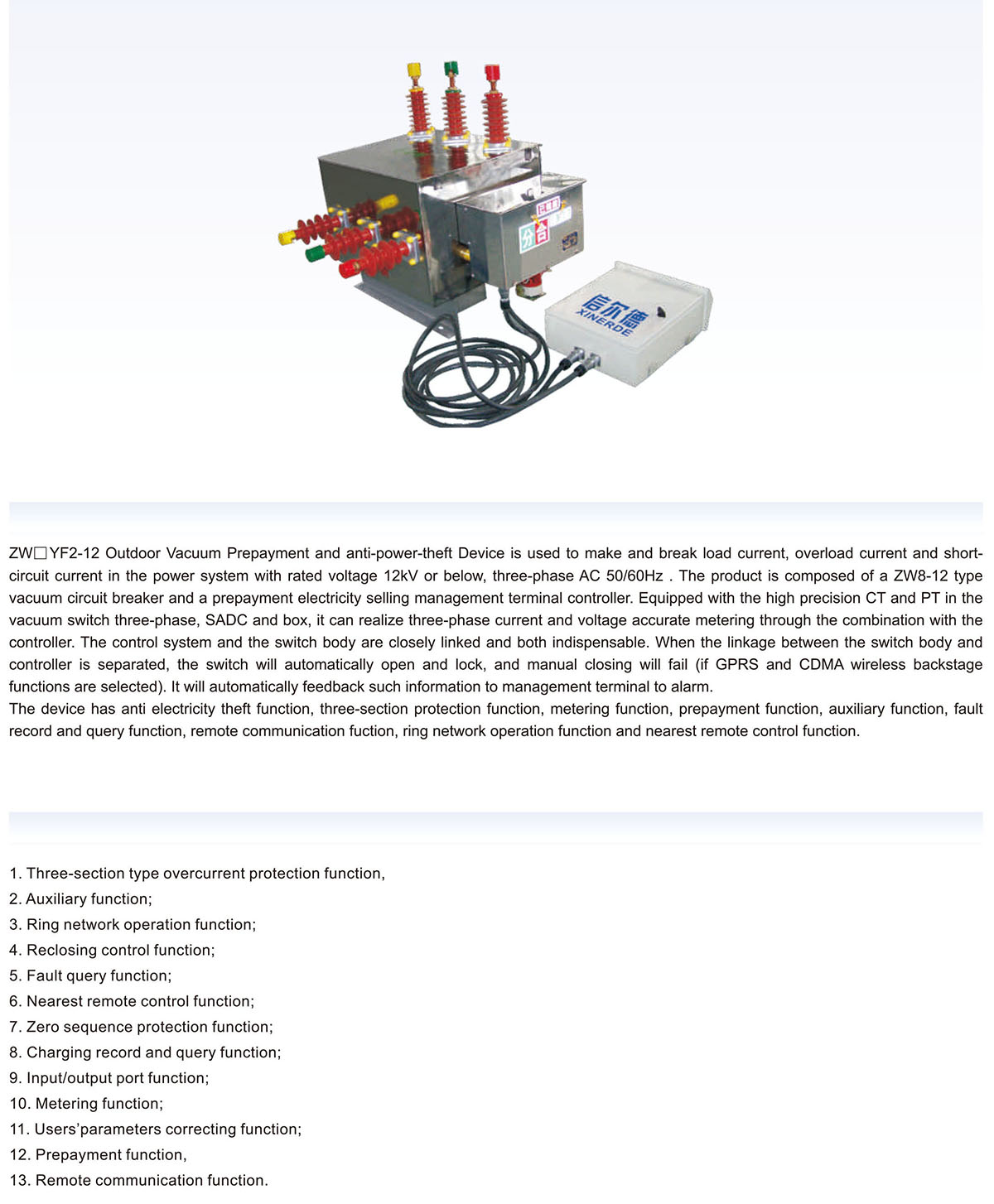 Prev:ZW口YF1-12 Outdoor Vacuum Prepayment and Anti-power-theft Device